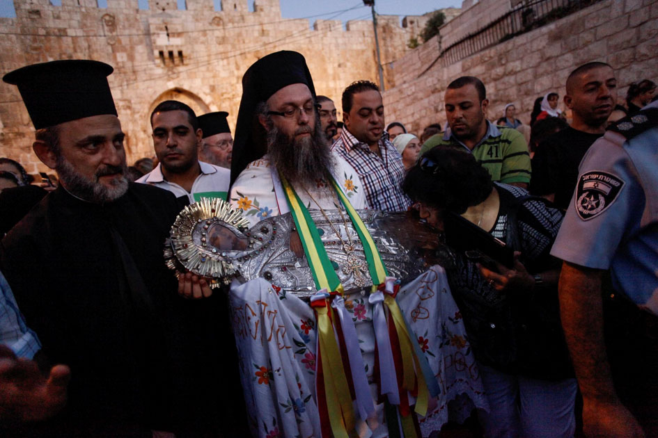 Comme de coutume à Jérusalem, c’est en portant une icône de la Vierge Marie que le patriarche latin (ici l’administrateur apostolique) parcourt le quartier chrétien à l’occasion de la clôture