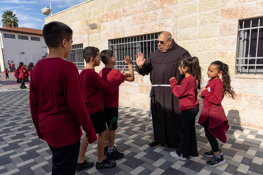 Dans l’école, l’arabe est travaillé avec exigence, mais beaucoup de cours — les matières scientifiques surtout — sont donnés en hébreu. « Je ne suis pas ici pour défendre une idéologie, affirme-t-il. Je suis ici pour annoncer Jésus. Je veux atteindre leur mentalité, leur cœur, dans n’importe quelle langue. » Au-delà de l’école, le P. Abdel Massih consacre une grande part de son temps à la catéchèse et à la vie paroissiale.