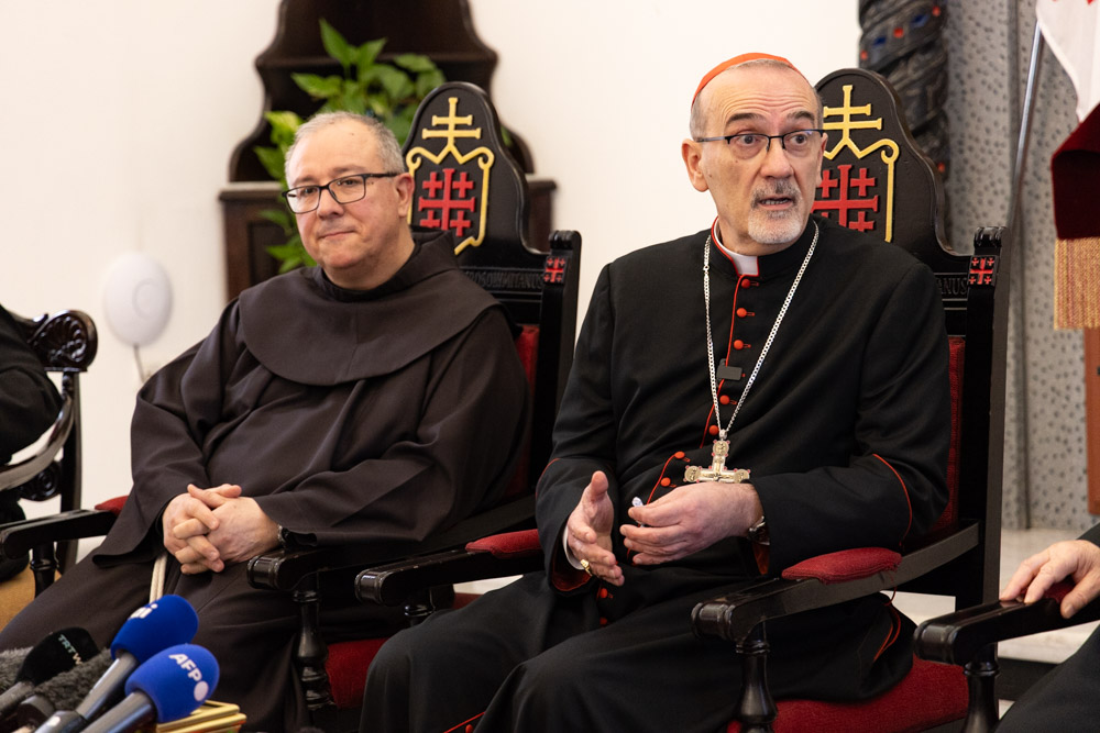 (g.s.) – Cet après-midi à Jérusalem, le patriarche latin Pierbattista Pizzaballa et le custode de Terre Sainte, le père Francesco Ielpo, ont rencontré les journalistes au siège du patriarcat. La conférence de presse, fixée depuis plusieurs jours, aurait dû se concentrer sur Pâques et sur sa signification pour la communauté chrétienne dans cette nouvelle saison de guerre dans la région du Moyen-Orient.